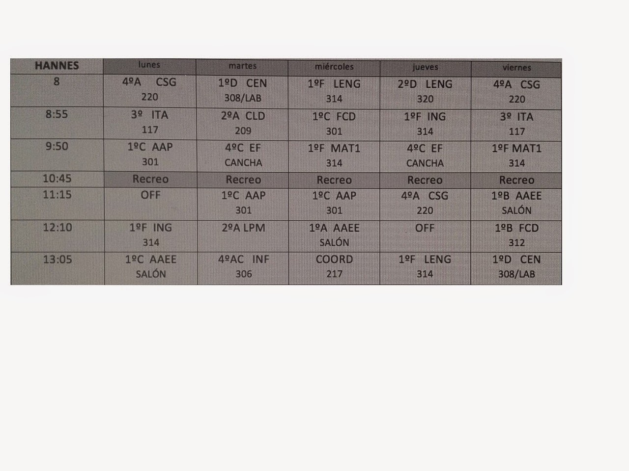 Esta semana es la primera semana real en la escuela, pero no es una semana normal, porque aquí en Las Pamas hay una huelga de las universidades, pero muchos de los alumnos de mi insti toman parte en ella, porque ..... pienso que es, porque pueden estar en su casa, pero los chicos que hicieron ir al insti están en clases con sólo 4 o 5 alumnos pero los días normales eran muy divertido, pero muy agotado porque es sólo español durante mucho tiempo. El más difícil de hablar español no es el español a su propio ritmo, pero el velocidad los hablan, porque está ahí su idioma Creo que quiero añadir mi horario a este blog porque el yo no tiene que explicar qué tipo de horario es.